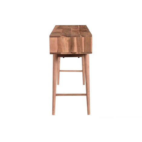 La console GLADY est le fruit d’un magnifique travail artisanal. Elle est quasi intégralement conçue en acacia massif, une essence de bois aux nuances rougeoyantes uniques. L’association de ce bois d’exception et d’un travail manuel offre un rendu authentique au charme fou. La ligne épurée de cette console met en valeur la beauté du bois massif. GLADY est une console de caractère qui s’intègre facilement au reste de la décoration. Meuble chaleureux et intemporel, on l’imagine aussi bien installé dans une entrée que dans une chambre ou un séjour.