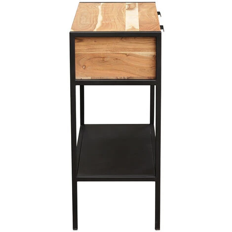 Cette jolie console créée par Caroline Marliac, designer Miliboo, se compose d’une structure aérienne et graphique en métal noir qui souligne parfaitement l’élément de rangement en acacia massif. L’acacia est une essence de bois robuste particulièrement appréciée pour ses tons chauds prononcés qui contrastent ici à merveille avec le métal noir.