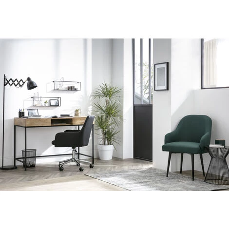 Avec sa forme moderne et son revêtement en tissu bleu canard, cette chaise de bureau apportera une touche déco à l’espace de travail. Grâce à son grand dossier, ses accoudoirs et son coussin d’assise d’une densité de 24 kg/m³, elle est adaptée à un usage quotidien et offre un très bon confort d’assise, idéal pour les longs moments passés derrière son bureau. Grâce à son pied réglable en hauteur, le modèle SHANA s’adapte à chaque utilisateur : son assise passe de 45 à 53 cm de haut en un clin d’oeil. Pour plus de praticité, ce fauteuil pivote et est équipé de 5 roulettes pour se déplacer aisément.