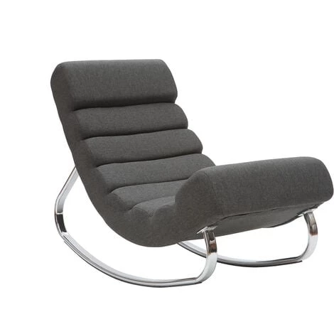 Avec son piètement en métal chromé et son revêtement en tissu gris foncé, le rocking chair TAYLOR est un beau fauteuil au style moderne. Les sillons qui traversent l’assise dessinent un joli motif géométrique et donnent à ce fauteuil un aspect douillet appréciable. Le mariage entre gris foncé et métal argenté fait du modèle TAYLOR une pièce actuelle. Il trouvera sa place dans un intérieur minimaliste, aux tons neutres, ou dans un salon chaleureux aux côtés de la table d’appoint SUZIE et d’un tapis graphique.