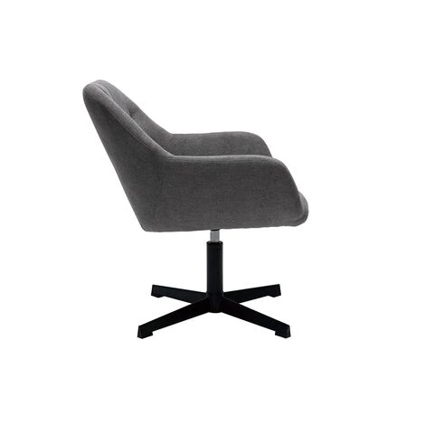 Pièce déco hyer design, ce fauteuil aux beaux volumes se distingue par son siège enveloppant en tissu effet velours gris et son piètement stable en métal noir. Détail de style : il affiche un bel effet capitonné au niveau de son dossier !