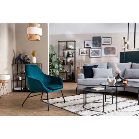 Ce fauteuil à la personnalité chaleureuse se compose d’une large coque enveloppante aux lignes incurvées et de quatre pieds fins en métal noir semblables à des petites pattes de scarabées. La coque rembourrée est habillée d’un magnifique tissu effet velours d’une grande douceur. Son coloris lumineux et vibrant réchauffera tous les intérieurs !