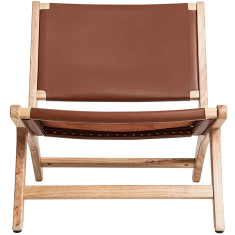 Sa structure en bois clair évoque la nature, le revêtement marron à l’aspect chaleureux crée une atmosphère réconfortante. Un design sobre et élégant qui invite à l’apaisement. Sous ses faux airs de coups de coeur ramenés de voyages, ce fauteuil apportera une touche authentique aux pièces de vie à l’ambiance ethnique chic.