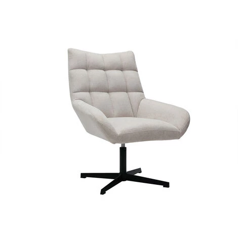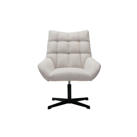 Harmonieux mélange d’un revêtement en tissu effet velours texturé beige et d’un piétement en métal noir, ce fauteuil pivotant cultive un esprit raffiné et cosy. Sa silhouette volumineuse invite à la détente et promet un maximum de confort. Son grand dossier matelassé apporte tout le soutien nécessaire tout en donnant à l’ensemble un aspect douillet. Chic et confortable, le fauteuil KING deviendra la pièce maîtresse du salon.