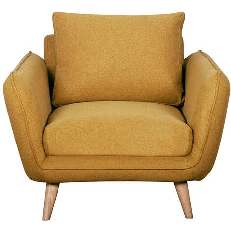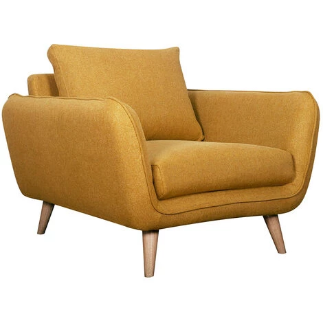 Ce fauteuil 100% made in France se distingue notamment par son assise ample et profonde (L60 x P60 cm). Celle-ci est garnie d’une mousse dense (28 kg/m3) et habillée d’un joli tissu jaune cumin (100% polyester) à la fois souple et doux au toucher. Le moelleux de ses coussins et ses larges accoudoirs participent aussi au confort. Ils forment une enveloppe protectrice propice à la relaxation…