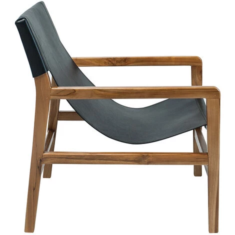 Conçue en teck massif et en cuir de vache noir, cette assise décontractée affiche une silhouette terriblement tendance. Grâce à l’association de ces deux matières brutes, ce fauteuil est une belle pièce de caractère qui donne du cachet à la décoration d’intérieur. Sa structure en teck en fait une pièce de mobilier aussi jolie que robuste. Ce bois tropical est apprécié pour sa solidité. On aime particulièrement ses tons naturels qui lui permettent de se fondre dans toutes les pièces de la maison. Fabriqué artisanalement, ce fauteuil est parfait pour les intérieurs en quête d’authenticité !