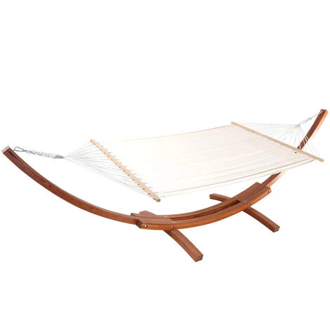 Direction les beaux jours avec le hamac de jardin BELLE ILE, propice à la détente et au bien-être ! C’est le modèle « dolce vita » par excellence, parfait pour la sieste ou simplement pour profiter tranquillement de votre jardin.La structure de ce hamac de jardin est en mélèze verni, un bois imputrescible qui bénéficie d’une forte durabilité naturelle, totalement imperméable et résistant au soleil. La toile est 100% coton, pour un entretien facilité. Le poids maximum supporté est de 200 kg.