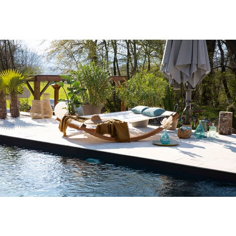 Direction les beaux jours avec le hamac de jardin OUESSANT, propice à la détente et au bien-être ! C’est le modèle « dolce vita » par excellence, parfait pour la sieste ou simplement pour profiter tranquillement de votre jardin.Généreux, il peut faire office de transat double et accueillir facilement 2 personnes.La structure de ce hamac de jardin est en mélèze verni, un bois imputrescible qui bénéficie d’une forte durabilité naturelle, imperméable et résistant aux uv. La toile, imperméable, est 100% polyester, pour un entretien facilité.