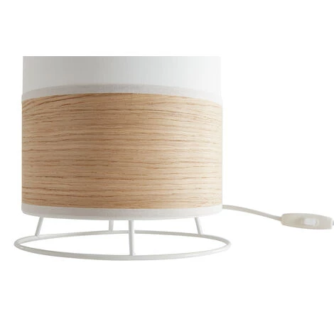 Matière : Abat-jour en coton et feuille de chêne clair, socle en métal blanc, câble en plastique