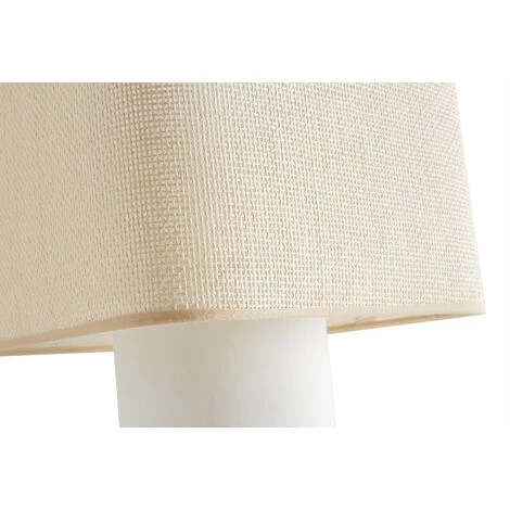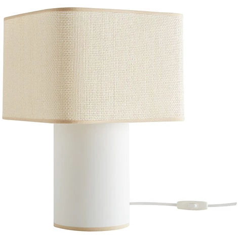 Matières : abat-jour en coton papier tissé, base et biais en coton, armature en métal et câble en plastique