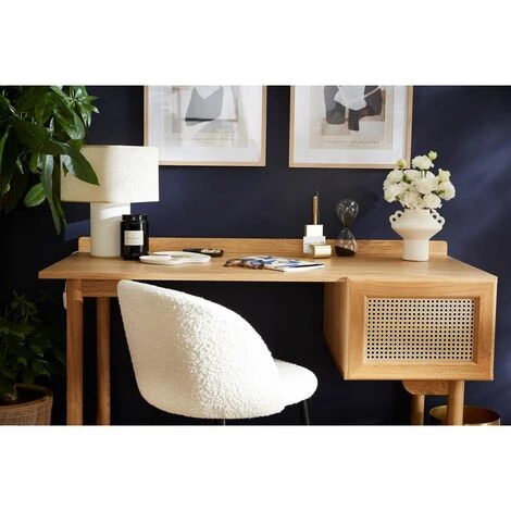Pour compléter son look discret, cette lampe à poser qui est dotée d’un câble électrique blanc (L200 cm) avec interrupteur, s’alimente grâce à une prise et fonctionne avec une ampoule E27.