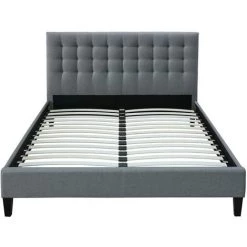 Ce lit possède un sommier composé de 28 lattes courbées pour une meilleure tenue. Il accueille un matelas de 160×200 cm (non inclus). Avec un revêtement en polyester, ce lit dispose d’un charme inconditionnel et d’un toucher très doux. Ses pieds en bois inclinés rappellent tout à fait le style scandinave. Vous serez conquis !
