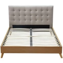 En effet, conçu en bois, ce lit possède une tête de lit en polyester. Le mariage de ces deux matières offrent un rendu typiquement nordique. De plus, sa tête de lit bénéficie de capitons ce qui offre une touche de romantisme à celui-ci. Très moderne, il sera parfait dans une chambre aux couleurs neutres, il créera sa propre ambiance cosy.