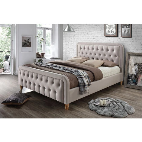 Son revêtement en polyester, facile d’entretien, vous procure un toucher extrêmement doux. Ses pieds en bois arrondis très détaillés ajoutent une touche au niveau de la finition qui termine parfaitement bien ce lit.
