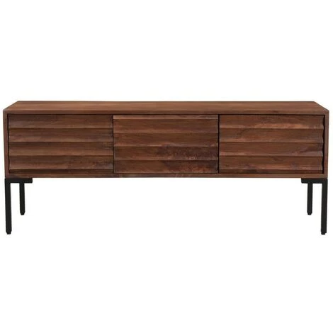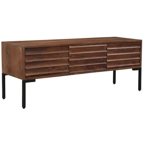 Fruit d’un savoir-faire unique, ce meuble TV réalisé en manguier massif se distingue par ses façades sculptées directement dans la matière. Le motif basé sur une succession de lignes horizontales offre un rendu ultra contemporain. Le manguier a été travaillé artisanalement pour offrir ce relief singulier qui souligne particulièrement bien l’aspect authentique et le caractère unique de ce bois exotique.