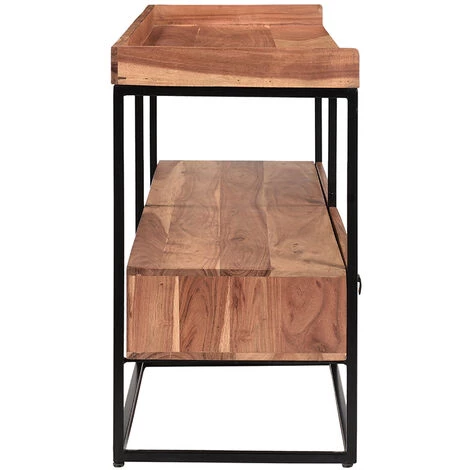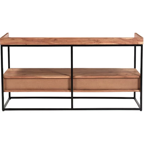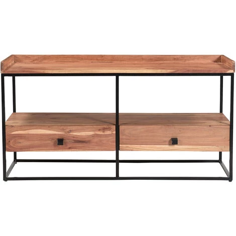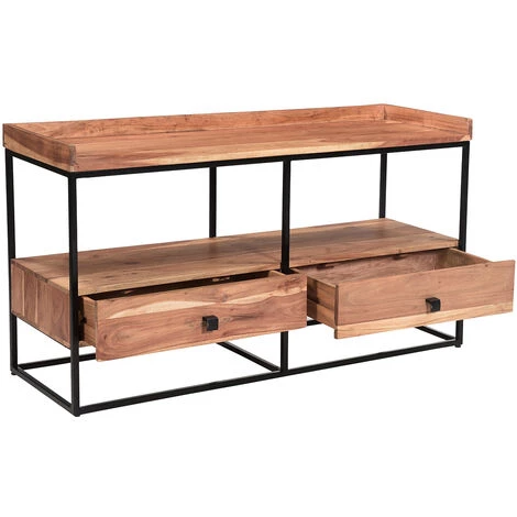 Pour un intérieur chaleureux, optez pour le meuble TV avec tiroirs en acacia et métal noir HERMANN.