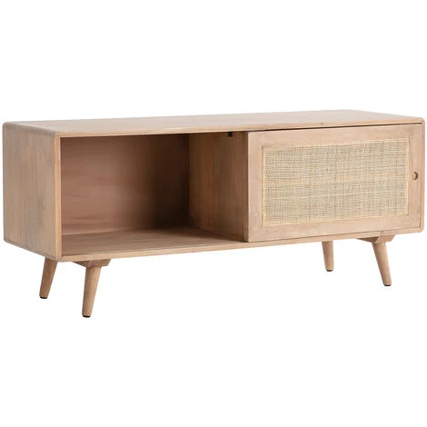 Conçu en manguier, ce meuble TV design arbore un esprit nature des plus envoûtants. Sa porte composée de rotin avec cannage en fait une pièce à la fois intemporelle et particulièrement tendance.