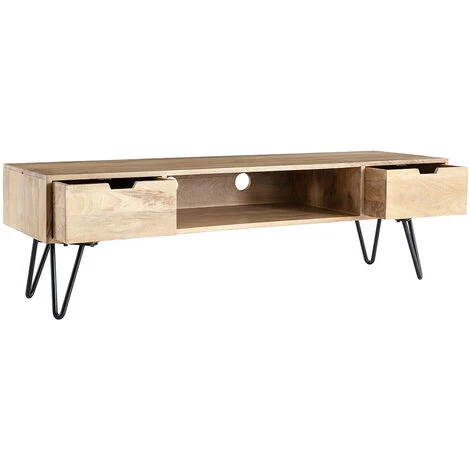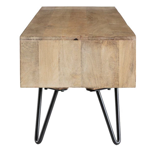 Conçu de manière artisanale en manguier et métal noir, ce meuble TV arbore le cachet brut du « fait main » et apportera une vraie personnalité à votre pièce de vie. Le grain particulier du manguier offre des détails et de belles nuances qui en font un meuble unique.