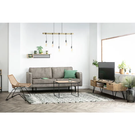 Dans un salon aux airs bohèmes ou plus industriels, ce meuble TV en bois massif deviendra un élement incontournable de votre décoration. Il peut également s’intégrer à une déco plus scandinave, en face d’un joli canapé.