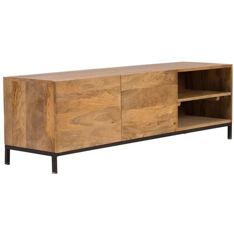 Unique, ce meuble TV apporte de la puissance à votre intérieur. Conçu entièrement en manguier, il possède une finition exemplaire avec sa couche de vernis. Robuste, il possède un piétement en métal qui supportera votre télévision ainsi que tous les appareils HiFi. Avec ses niches fermées et ses niches ouvertes, ce meuble TV dispose de nombreux rangements qui vous satisferont. Ses dimensions généreuses vous offrent la possibilité d’exposer vos objets déco en plus de votre téléviseur.