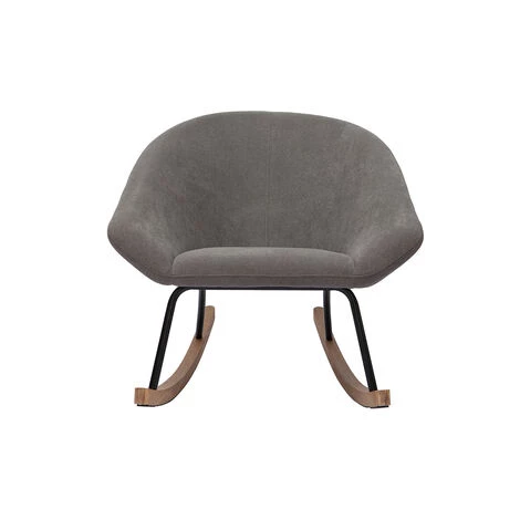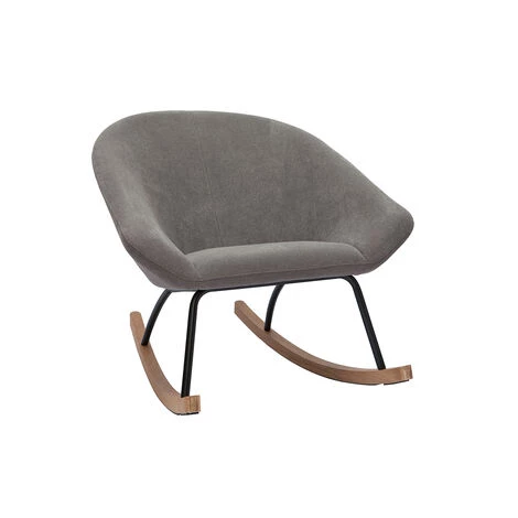 Allié détente par excellence, ce rocking chair n’en délaisse pas moins son sens du style. Ses belles lignes courbées et son revêtement en tissu effet velours gris forment un ensemble dans l’air du temps. Pour parfaire son look, son piètement associe métal noir et frêne massif. Aucun doute, le design de ce fauteuil saura séduire les amateurs d’assises tendance !