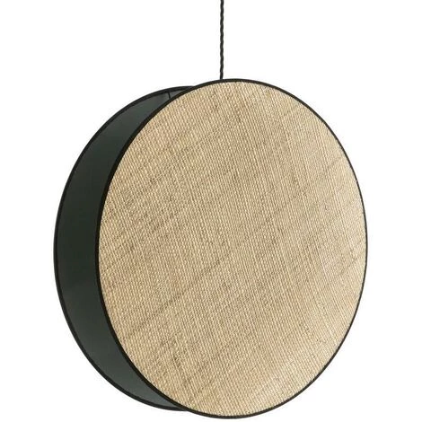 Matière : Disques en tissu velours 100% polyester et tissu rabane / Structure en métal noir / Câble en tissu torsadé / Rosace en plastique noir