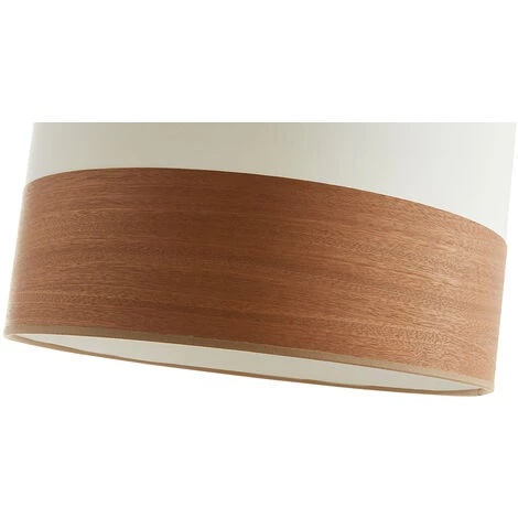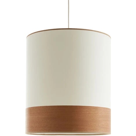Matière : Abat-jour en coton et feuille d’acajou, carcasse abat-jour en métal blanc, câble et rosace en plastique