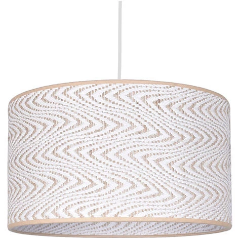 Cette suspension à la beauté hypnotique offre un joli contraste entre une silhouette contemporaine et une matière naturelle. Elle se distingue par son abat-jour en tissu rabane naturel et blanc au motif à chevrons captivant. La lumière filtrant à travers la matière, cette suspension fournit un éclairage d’ambiance, à la fois doux et tamisé.