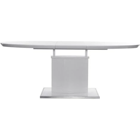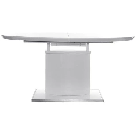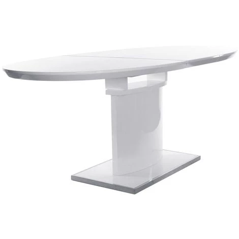 Plateau et pied central en panneaux de fibres de bois laqué blanc brillant. Entourage du piètement chromé.