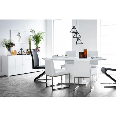 La table à manger design extensible CLEONES exprimera tout son potentiel déco dans une salle à manger moderne agrémentée de chaises blanches ou noires telles que le modèle BELLA.