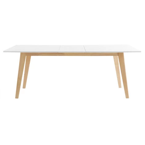 Le design soigné de cette table rectangulaire 6 personnes à rallonge reprend les codes du style nordique avec son chaleureux piètement en bois clair et la pureté de ses lignes. Modernisé par un large plateau blanc, l’ensemble se veut à la fois moderne et authentique. Au look aussi actuel qu’intemporel, SWAD s’adaptera à de nombreuses ambiances, et séduira à coup sûr les amateurs de déco scandinave.