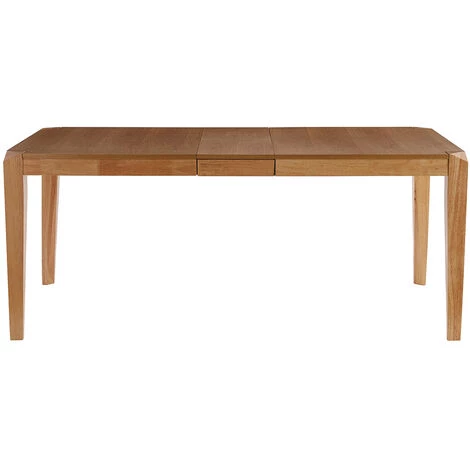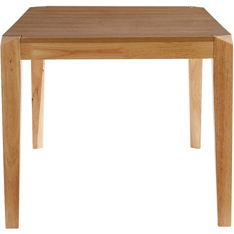Son large plateau rectangulaire en panneaux de particules de bois placage frêne apportera de la douceur et du charme à votre intérieur. Ses pieds en hévéa massif à la forme unique et le détail de ses angles biseautés en font une table à manger authentique et joliment travaillée.