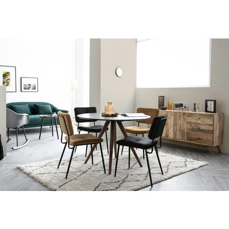 Cette table à manger ronde se mariera parfaitement à une décoration vintage aux couleurs pop, mais également à une ambiance plus typée avec les meubles en métal par exemple.