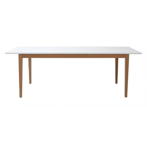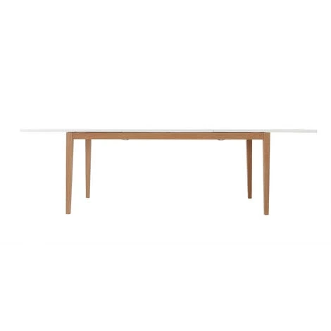 La table à manger scandinave extensible blanche pieds bois 180-260 cm DELAH, l’idéal pour les repas en nombre !