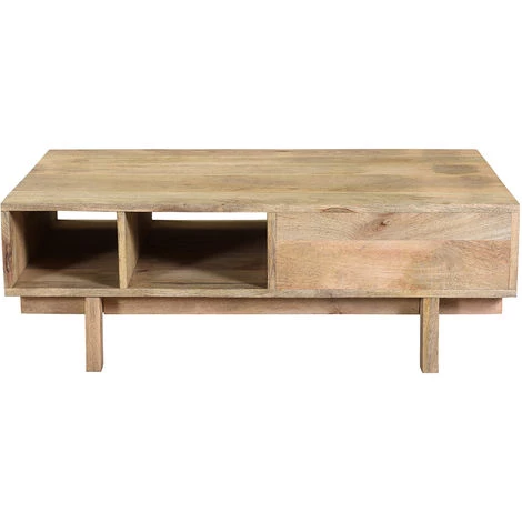 Pratique avec son grand plateau et ses différents rangements, il est possible de ranger les magazines qui traînent, les documents dans le tiroir et de ranger les télécommandes et manettes de jeu dans les deux niches ouvertes. Le plateau est ainsi laissé libre pour profiter d’instants conviviaux.