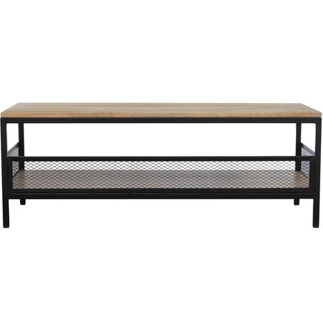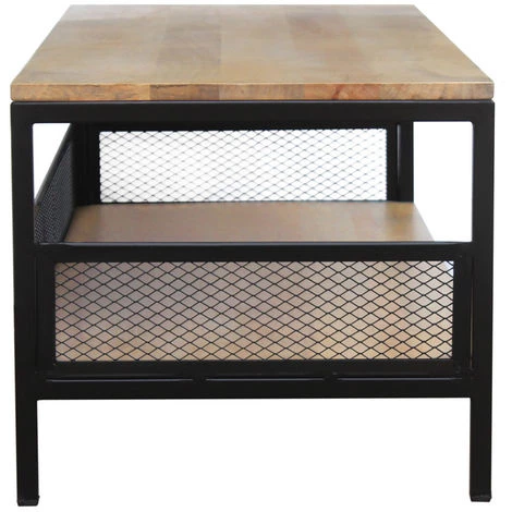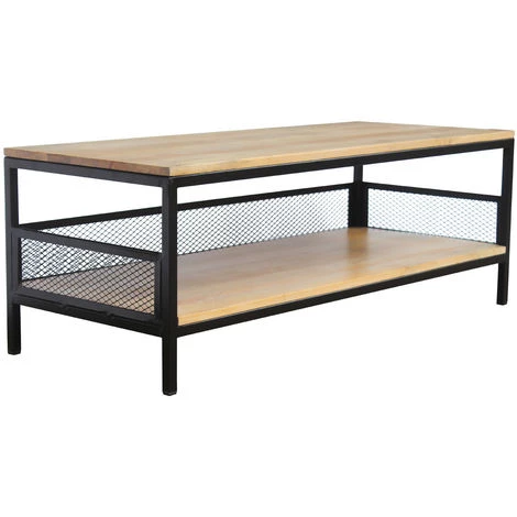 Elle est composée de deux plateaux en bois massif pour vous offrir un double espace de rangement. Le plateau inférieur est accompagné de rebords en métal perforé : ils sont pratiques pour ranger ses affaires et apportent une touche de caractère. Les dimensions de cette table en font un meuble pratique qui accueillera vos divers objets du quotidien.