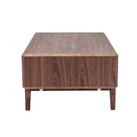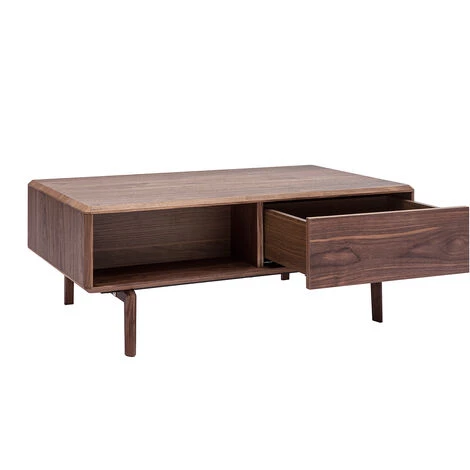 Bois foncé nervuré, angles et pieds biseautés : cette table basse a tout bon pour apporter un supplément de caractère à votre pièce de vie. Grâce à sa prestance évidente, elle donnera incontestablement beaucoup de cachet à votre intérieur.