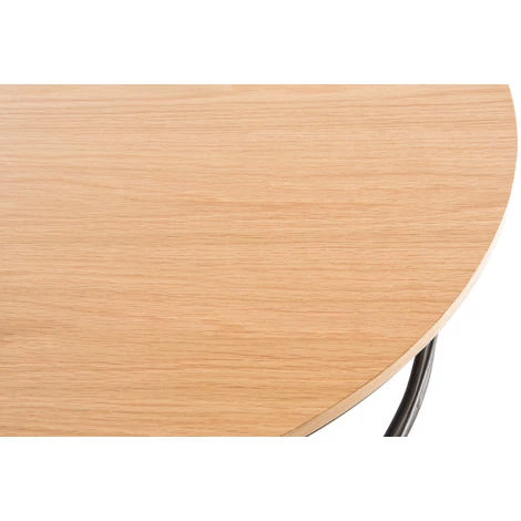 Cette table basse au charme fou apportera un petit côté nature à votre intérieur grâce au bois de son plateau tandis que sa base métallique donnera une petite touche industrielle et contemporaine. Mais ce qui fait toute l’originalité de cette table, c’est le joli contraste entre le design épuré de son plateau en panneaux de fibres de bois placage chêne clair et le piètement fait de plusieurs arceaux filaires métalliques qui se croisent harmonieusement.