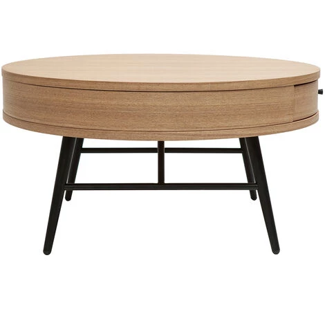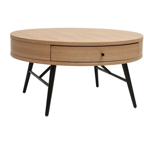Subtile association de courbes à l’inspiration vintage et de lignes graphiques contemporaines : ce petit bijou d’élégance sort des sentiers battus ! Modernisé par une base en métal noir, le large plateau rond (L81.5 x L81.5 x H12.2 cm) en bois clair apportera une touche chaleureuse et beaucoup de douceur à votre intérieur. Avec ses dimensions généreuses (L81.5 x L81.5 x H41.5 cm), KORAL jouera un rôle central pour instaurer une ambiance conviviale autant dans un salon rétro chic qu’intemporel.