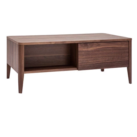 Résolument fonctionnelle, avec ses dimensions généreuses L100 x L60 x H40 cm et ses rangements intégrés, BENJA optimise l’espace de votre pièce de vie. La niche ouverte pourra accueillir quelques accessoires déco, une petite plante verte ou des livres, tandis que le large tiroir sera parfait pour ordonner à l’abri des regards vos magazines, courriers, appareils numériques ou jeux vidéo… Pour un look sous le signe de l’épure, la façade du tiroir sans poignée est équipée d’un système d’ouverture et fermeture « push-pull », accédez ainsi à cet espace de rangement fermé par simple pression. Au coeur de vos moments conviviaux : le plateau offre une large surface utile pour partager un goûter ou un apéritif entre proches !