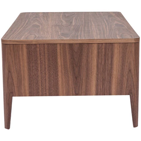 Plus que jamais dans l’air du temps, les influences déco 70’s attisent les convoitises avec en tête de liste des détails incontournables : l’indémodable bois foncé ! Ici, la structure placage noyer aux formes généreuses file une parfaite association avec un seyant piètement à l’inspiration vintage. Les angles arrondis modernisent la silhouette affirmée de cette table basse et apporteront une touche cosy à votre salon. Parfait pour contraster avec douceur dans une pièce lumineuse aux tons neutres, il sera tout autant apprécié pour son élégance dans une atmosphère chaleureuse et feutrée. Élément central dans un salon, on imagine cette table basse prendre place avec beaucoup de prestance dans une ambiance rétro ou dandy chic.