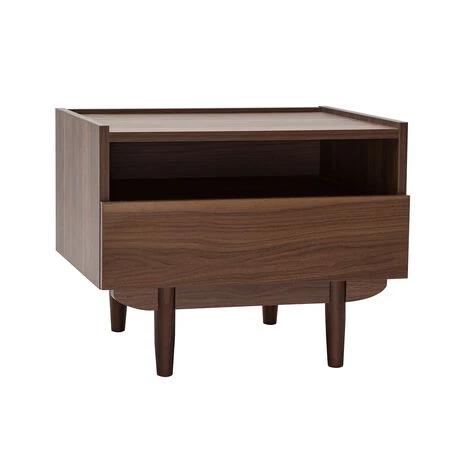 Avec ses lignes essentielles et son élégante finition noyer, la table de chevet SANAA animera votre côté du lit avec élégance. Cette pièce de caractère est caractérisée par un veinage contrasté et de jolies nuances brunes et chaleureuses.