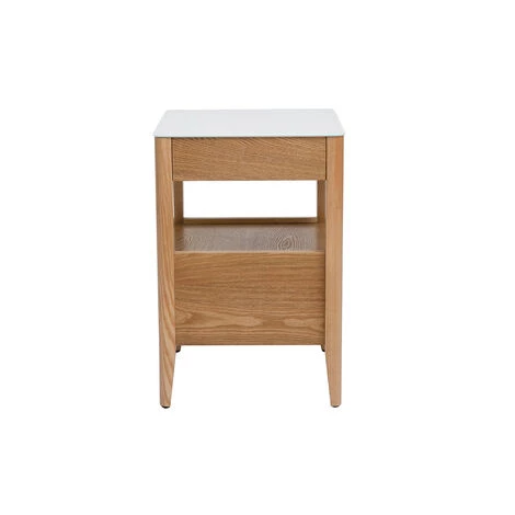 Besoin de charger votre smartphone ? Posez-le simplement sur le plateau en verre trempé blanc. Avec le chargeur sans fil intégré, finis les câbles emmêlés !