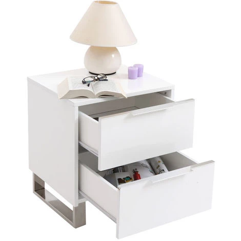 En panneaux de fibres de bois laqué blanc très facile d’entretien, cette table de nuit design sera parfaite dans une chambre à coucher de couleur contrastée elle s’assortira à merveille avec le lit de la même gamme. C’est le modèle qui créera un effet déco à coup sûr !