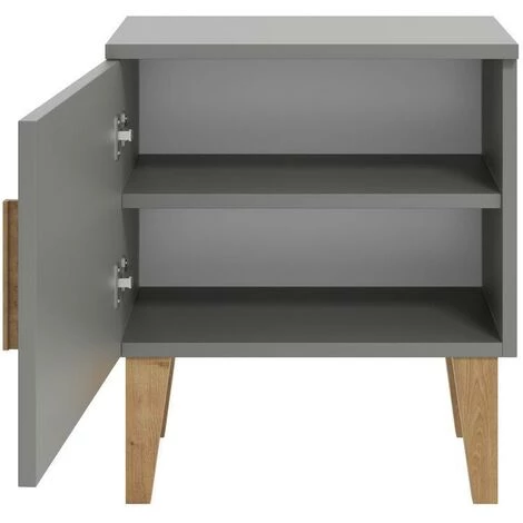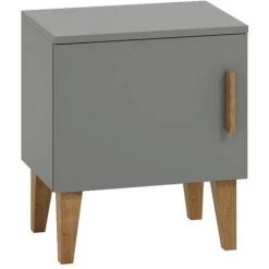 Cette table de chevet au look résolument scandinave a déjà tout d’une grande. On aime l’alliance du gris et du bois naturel ainsi que la justesse des proportions entre la structure en MDF et les jolis pieds compas en chêne massif.