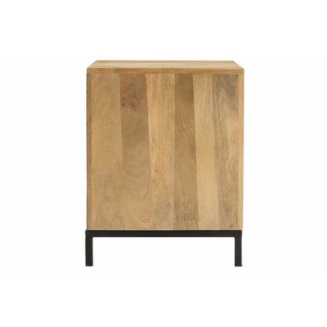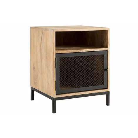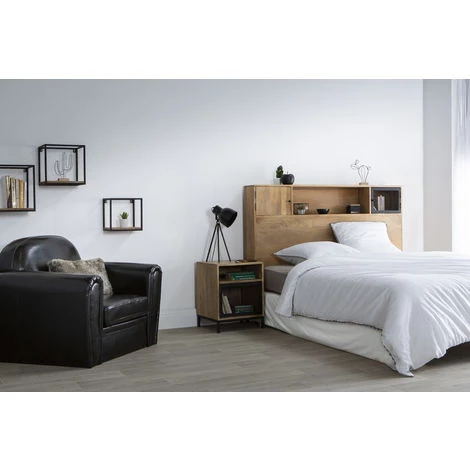 La structure en manguier de cette table de chevet fait voyager notre décoration vers l’Orient. Ce matériau originaire d’Asie est apprécié des amateurs de déco pour son aspect singulier et son côté chaleureux, idéaux pour une chambre à coucher cosy et tendance. Le piétement métallique et la porte en métal perforé rappellent la tendance industrielle tout en apportant une touche d’originalité. Pour accentuer l’esprit loft de ce chevet, disposez-y la lampe à poser PROJECT inspirée des lampes d’architecte.