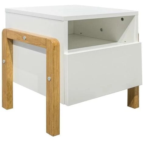 Ce chevet (L46 x P40 x H45 cm) est très fonctionnel. Il est composé de deux étagères fermées par une porte et d’une niche ouverte qui vous permettra de garder à portée de main vos lectures du moment.