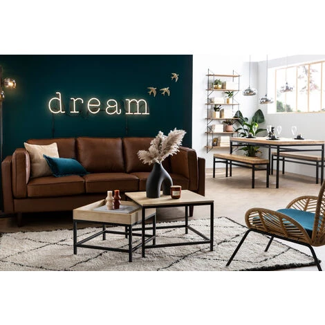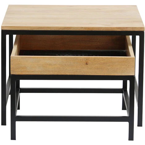 Ces deux tables gigognes, imaginées par Caroline Marliac, designer Miliboo, sont réalisées en bois massif et métal selon un savoir-faire artisanal. Ce sont des pièces authentiques au caractère brut. Chaque pièce est unique et possède tout ce qui fait le charme des meubles travaillés à la main. En dessinant une structure métallique à la ligne légère associée à deux plateaux carrés en manguier, Caroline modernise le style industriel et offre à ces deux tables basses un look élégant et actuel. Accompagnées d’un canapé en cuir, elles feront du salon un espace chaleureux et convivial.