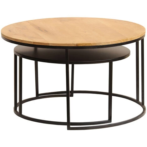 Ce lot de 2 tables basses est idéal pour créer une composition ultra graphique. On aime le jeu d’ambiance chaleureux créé par le grand plateau en manguier massif de 80 cm de diamètre et son association réussie avec un second plateau en métal noir. Robustes et modernes, elles trouveront toute leur place dans un séjour à la déco industrielle.