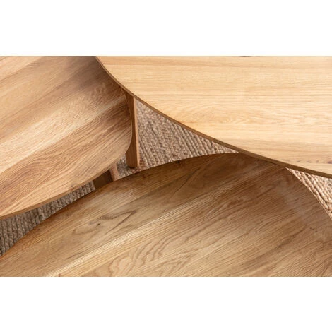 La conception en chêne massif de ces tables gigognes révèle les nervures du bois, rendant l’ensemble authentique et particulièrement chaleureux. Résistantes, elles garantissent une longue durée dans le temps ainsi qu’une belle robustesse.